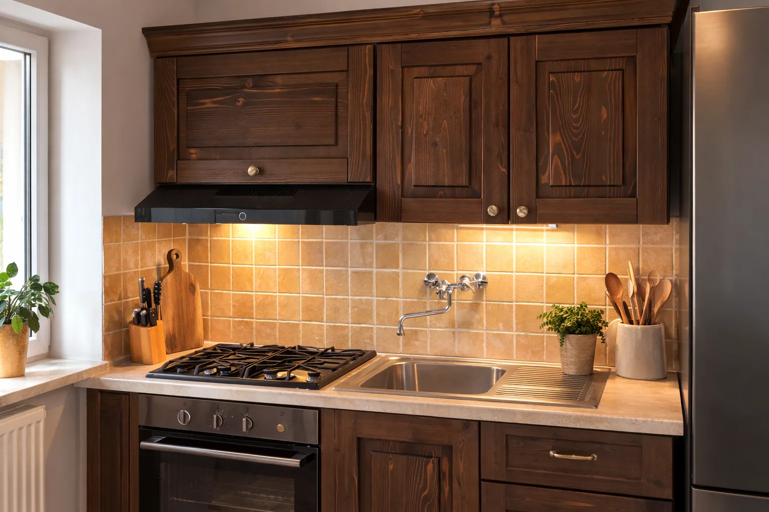 Bucatarie Rustica Dan pune in evidenta bucatarie rustica cu fronturi clasice si depozitare clara pe module. Piesa este dezvoltata ca referinta reala din atelier pentru proiecte de bucatarie pe comanda.